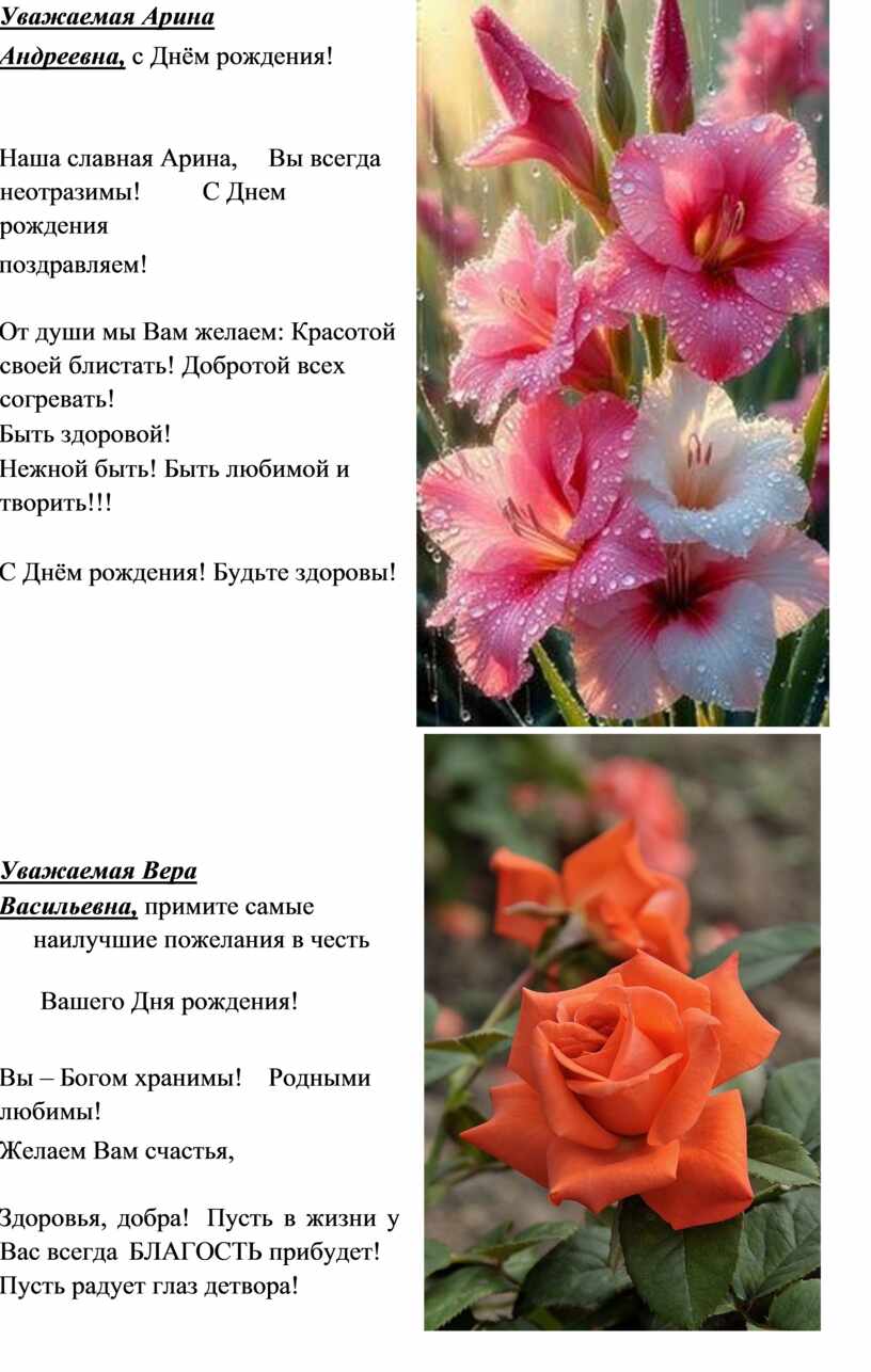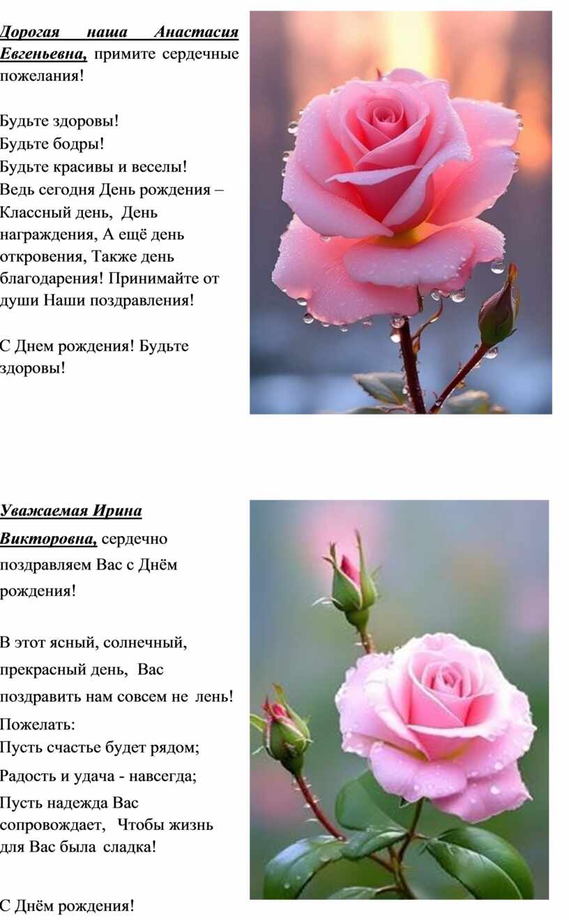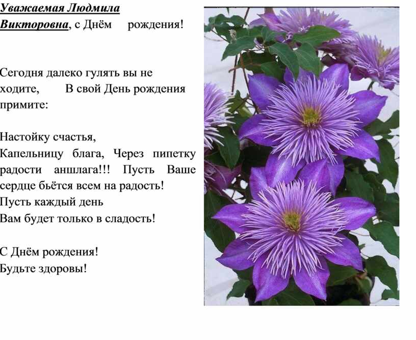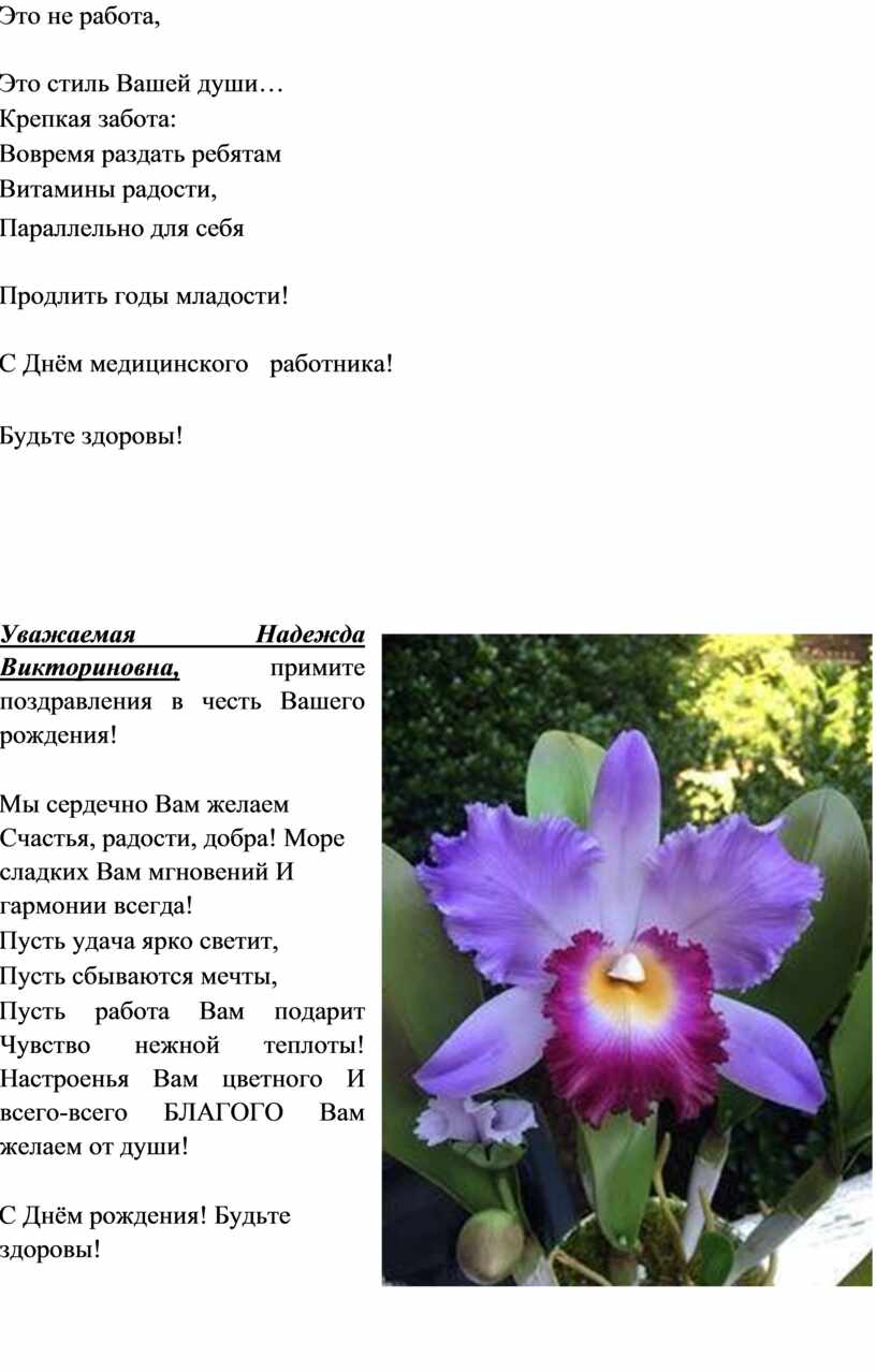 Сегодня очень важный день. От нас примите Вы сирень! Ведь День рождения у Вас И мы желаем Вам зараз: Удачи, счастья и добра, И позитива навсегда. Вам продуктивности в делах и яркости в Ваших мечтах! Улыбки нежной на устах и продуктивности в педагогических трудах!
