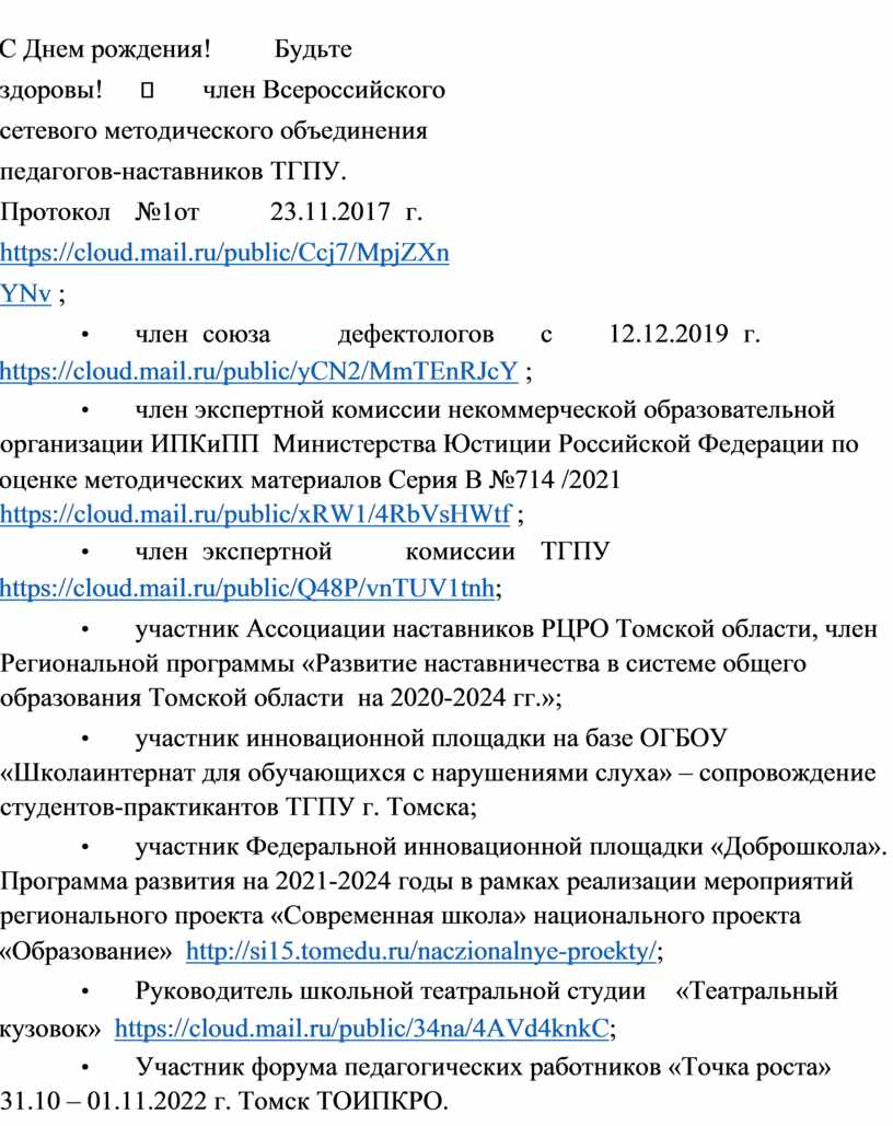 С Днем рождения! Будьте здоровы! член Всероссийского сетевого методического объединения педагогов-наставников ТГПУ. Протокол №1от 23.11.2017 г. https://cloud.mail.ru/public/Ccj7/MpjZXnYNv ;