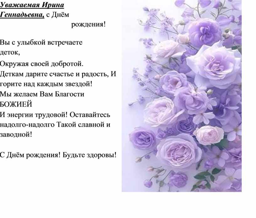 Уважаемая Ирина Геннадьевна, с Днём рождения!