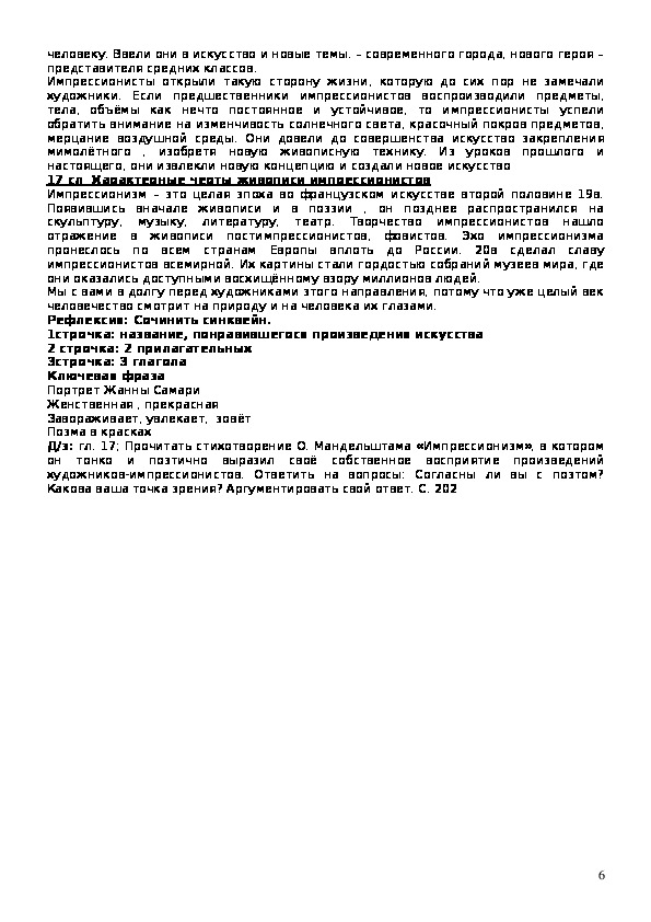 Д/з: гл. 17; Прочитать стихотворение О. Мандельштама «Импрессионизм», в котором