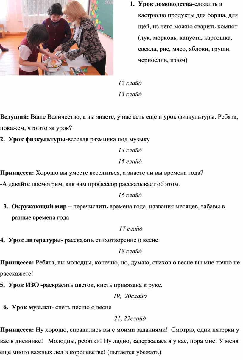 Принцесса: А теперь посмотрим, какие девочки у нас хозяюшки, помогают ли они маме.