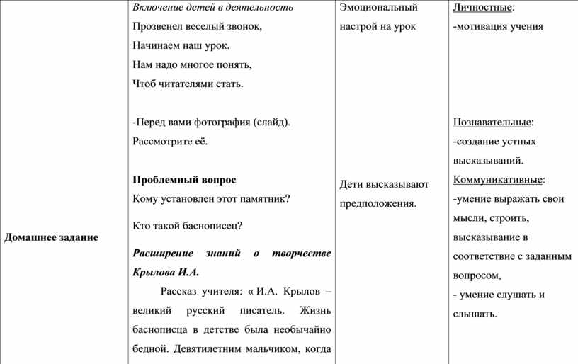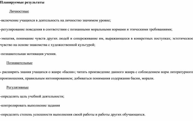 Личностные: - умение оценивать себя и окружающую жизнь при анализе образов, особенностей поведения героев басни.