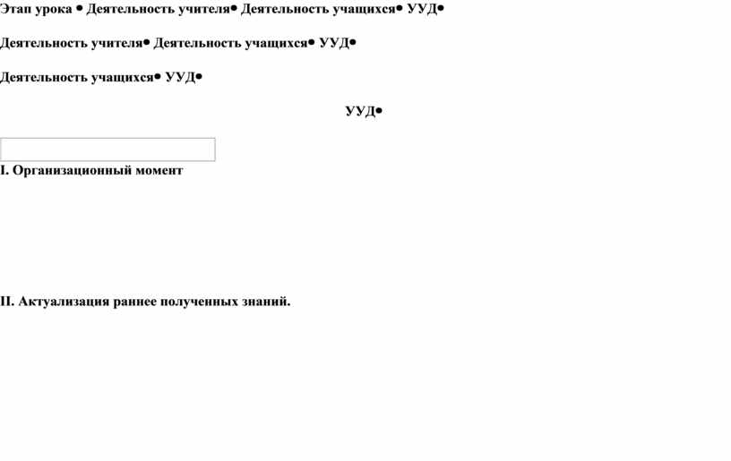 II. Актуализация раннее полученных знаний.