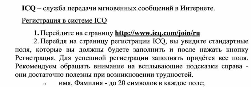 ICQ – служба передачи мгновенных сообщений в Интернете. Регистрация в системе ICQ