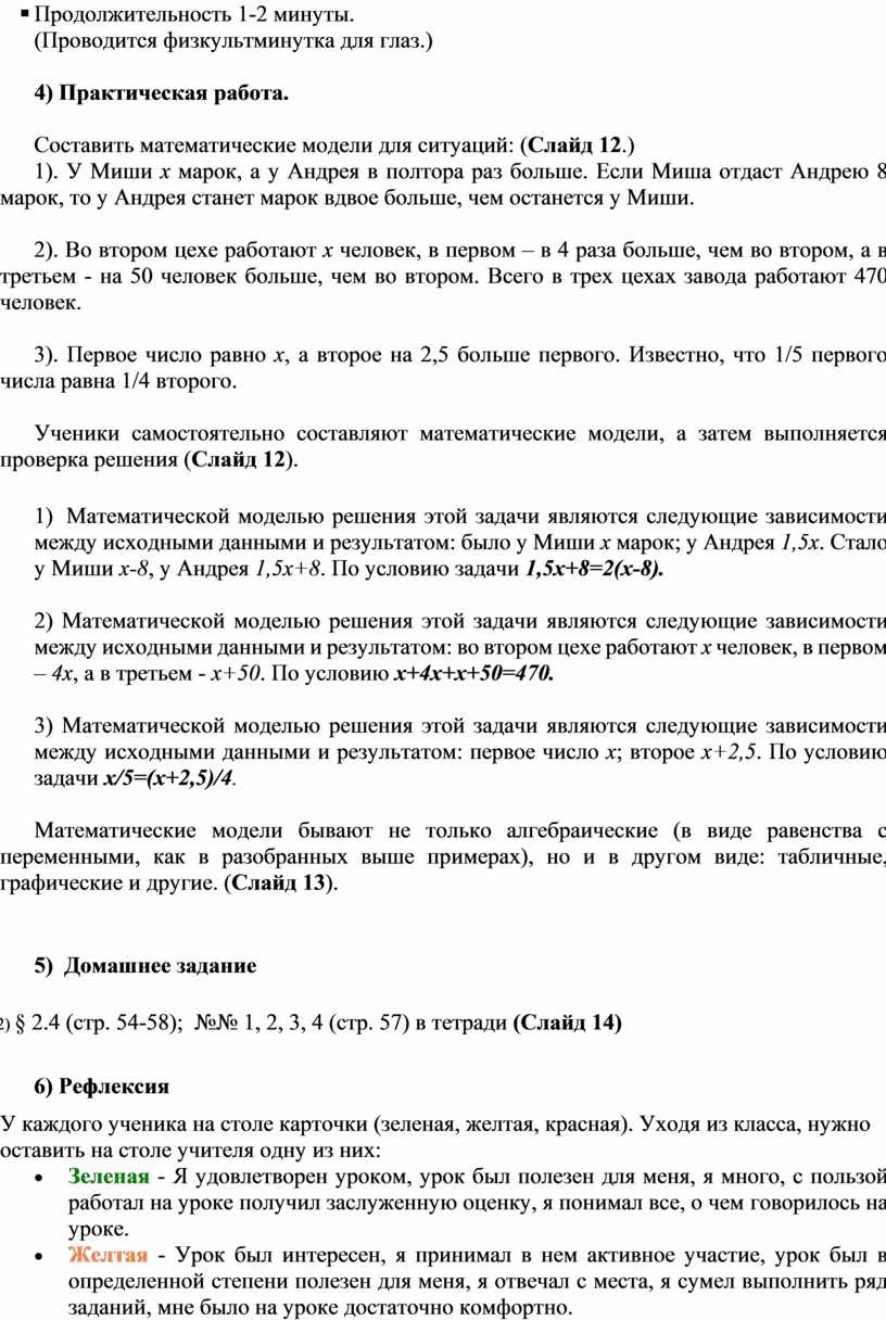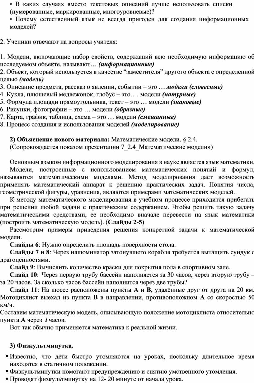2) Объяснение нового материала: Математические модели. § 2.4.