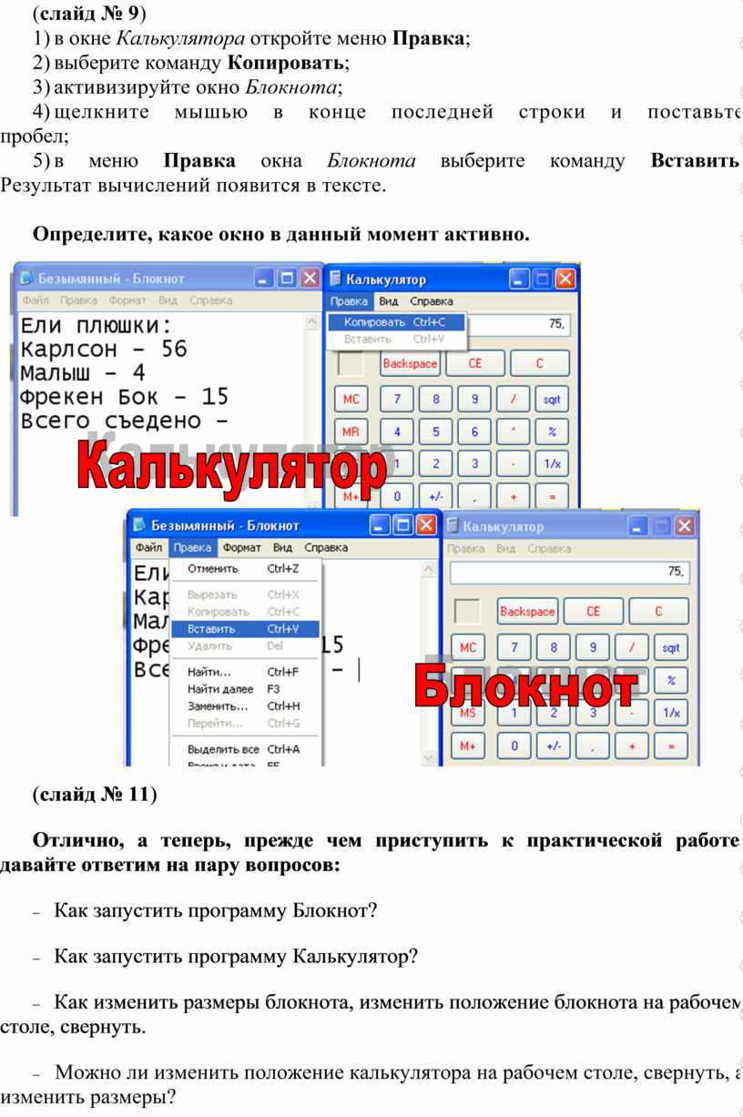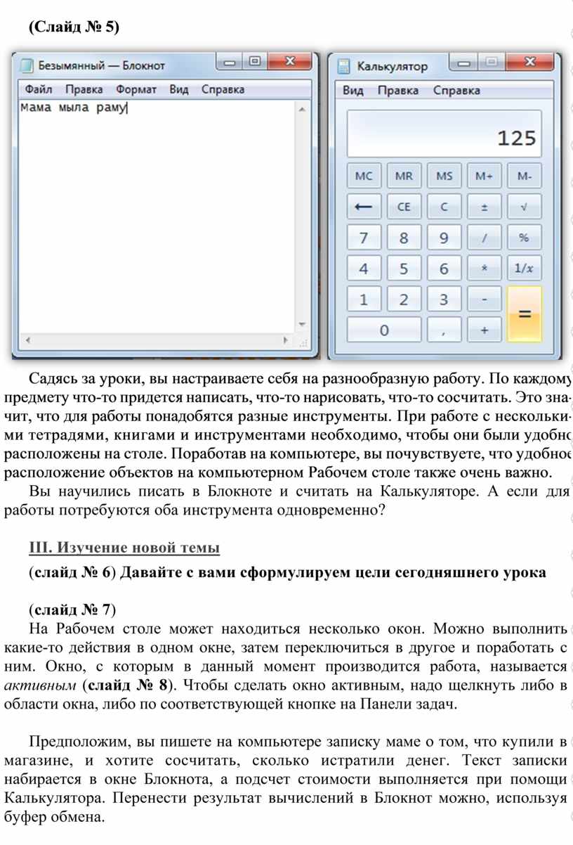 Вы научились писать в Блокноте и считать на Калькуляторе. А если для работы потребуются оба инструмента одновременно?
