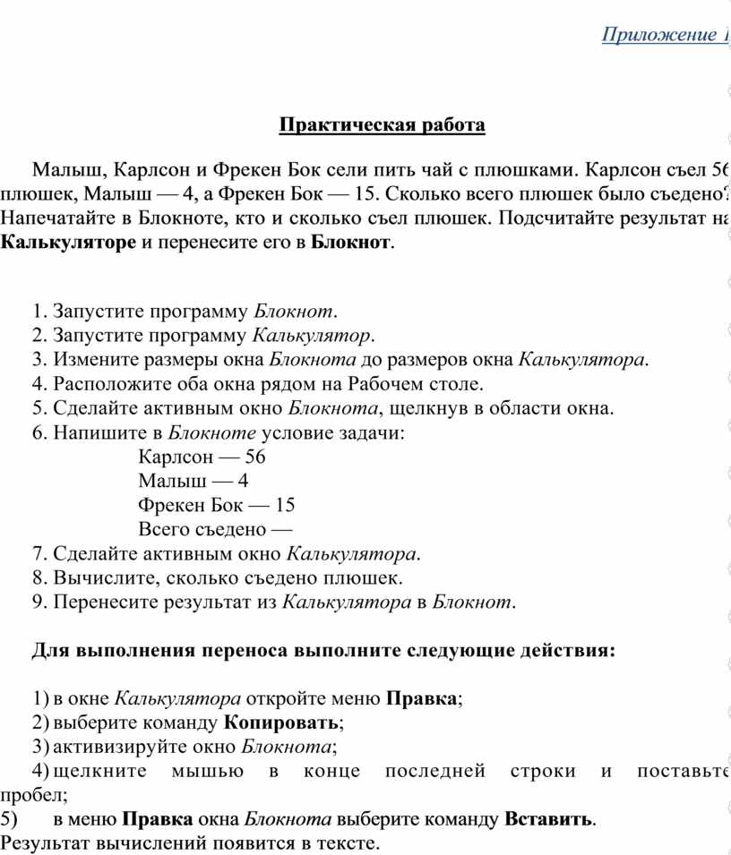 Сейчас вы будете выполнять практическую работу Приложение 1