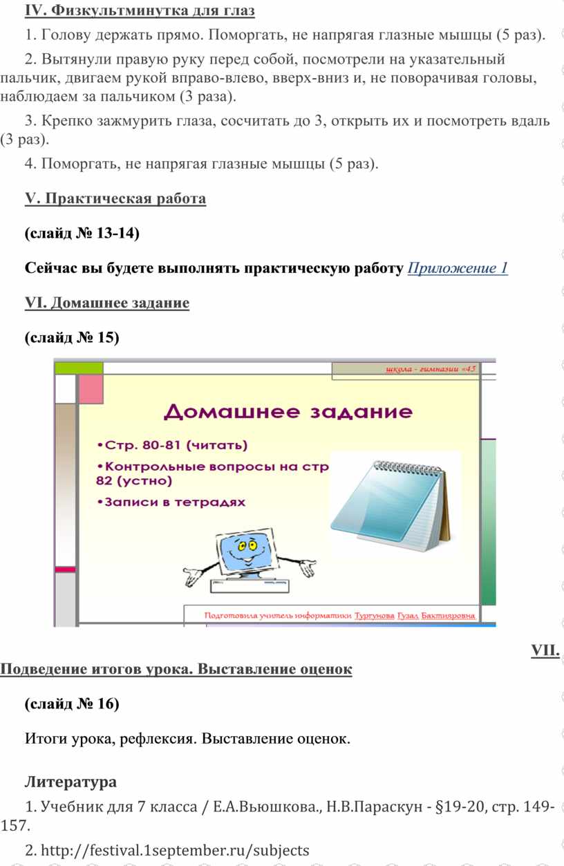 1. Учебник для 7 класса / Е.А.Вьюшкова., Н.В.Параскун - §19-20, стр. 149-157.