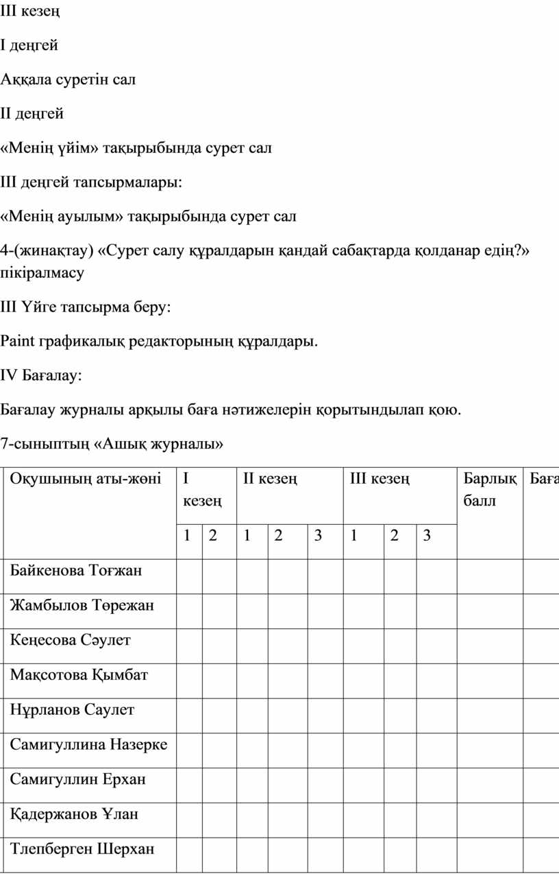 7-сыныптың «Ашық журналы»