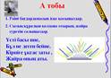 v 1 тапсырма «Кім жылдам?» ойыны Үй тапсырмасын тексеру: Сіздерге ортақ 10 сұрақ қойылады. Қай топ бірінші қол көтерсе сол топ жауап береді.