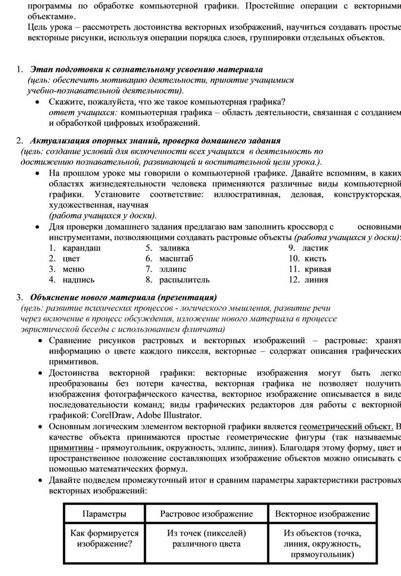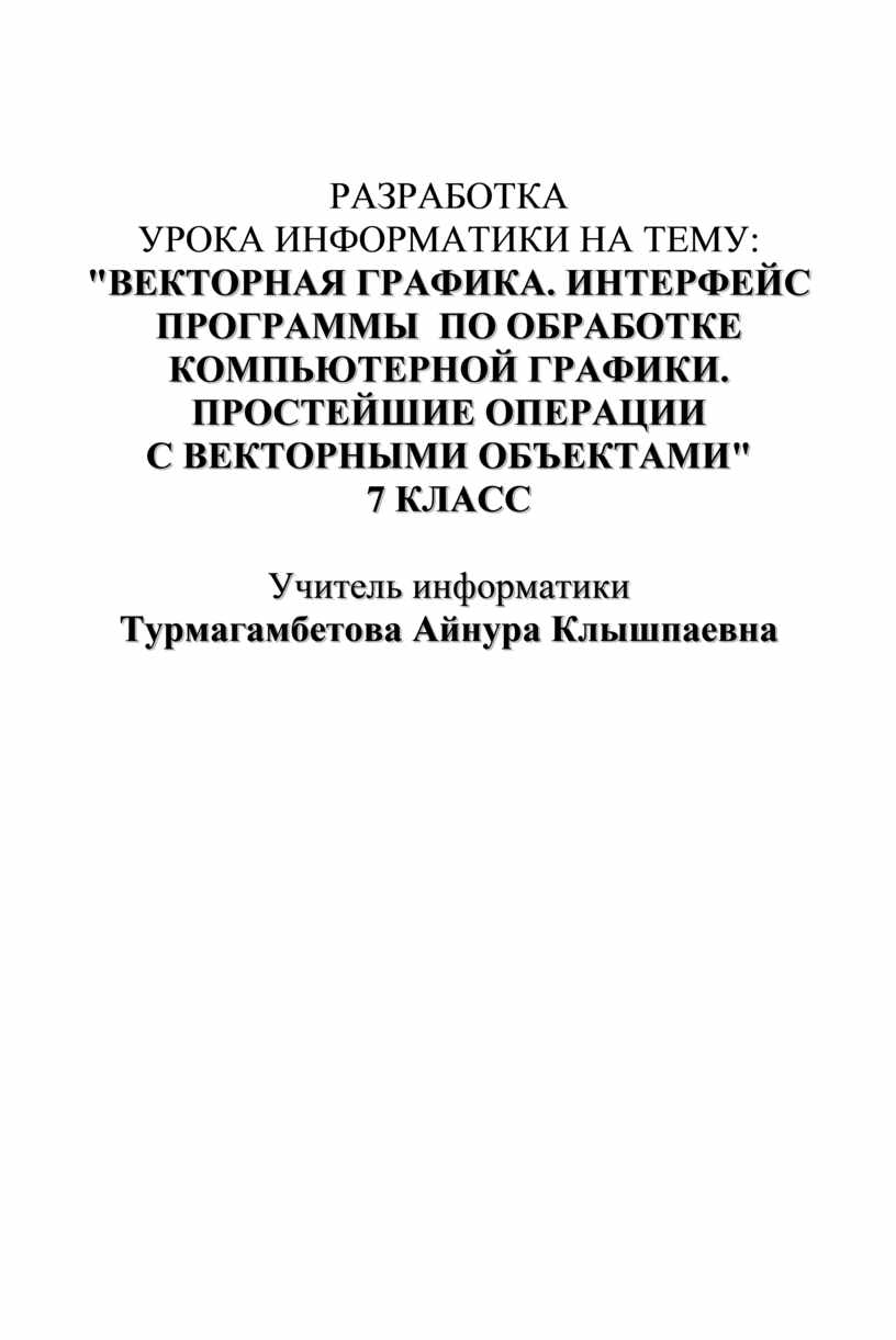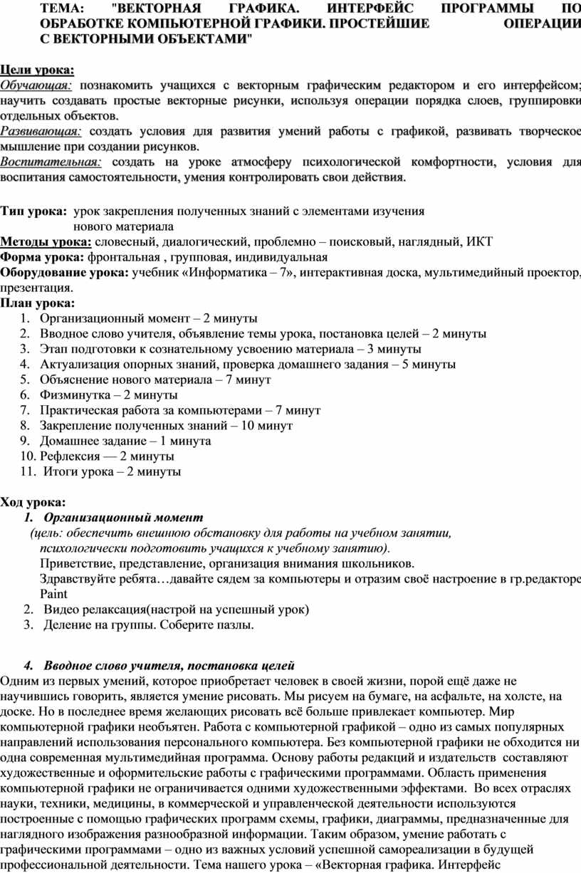 "ВЕКТОРНАЯ ГРАФИКА. ИНТЕРФЕЙС ПРОГРАММЫ ПО ОБРАБОТКЕ КОМПЬЮТЕРНОЙ ГРАФИКИ. ПРОСТЕЙШИЕ ОПЕРАЦИИ С ВЕКТОРНЫМИ ОБЪЕКТАМИ"
