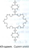 42-сурет. Фрактал кескіннің мысалы Түйін · Компьютерлік графика - программалық және аппараттық құралдар арқылы кескінді құруға болатын, өңдеу тәсілдері мен әдістерін зерттейтін информатиканың саласы. · Жасалу принципіне қарай кескіннің үш түрі бар: растрлық, векторлық және фракталдық. · Растрлық графиканың бас элементі - нүкте, векторлық графиканікі - сызық немесе қисық, фракталдікі - математикалық теңдеу. |