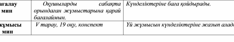 Оқушыларды сабақта орындаған жұмыстарына қарай бағалаймын. |