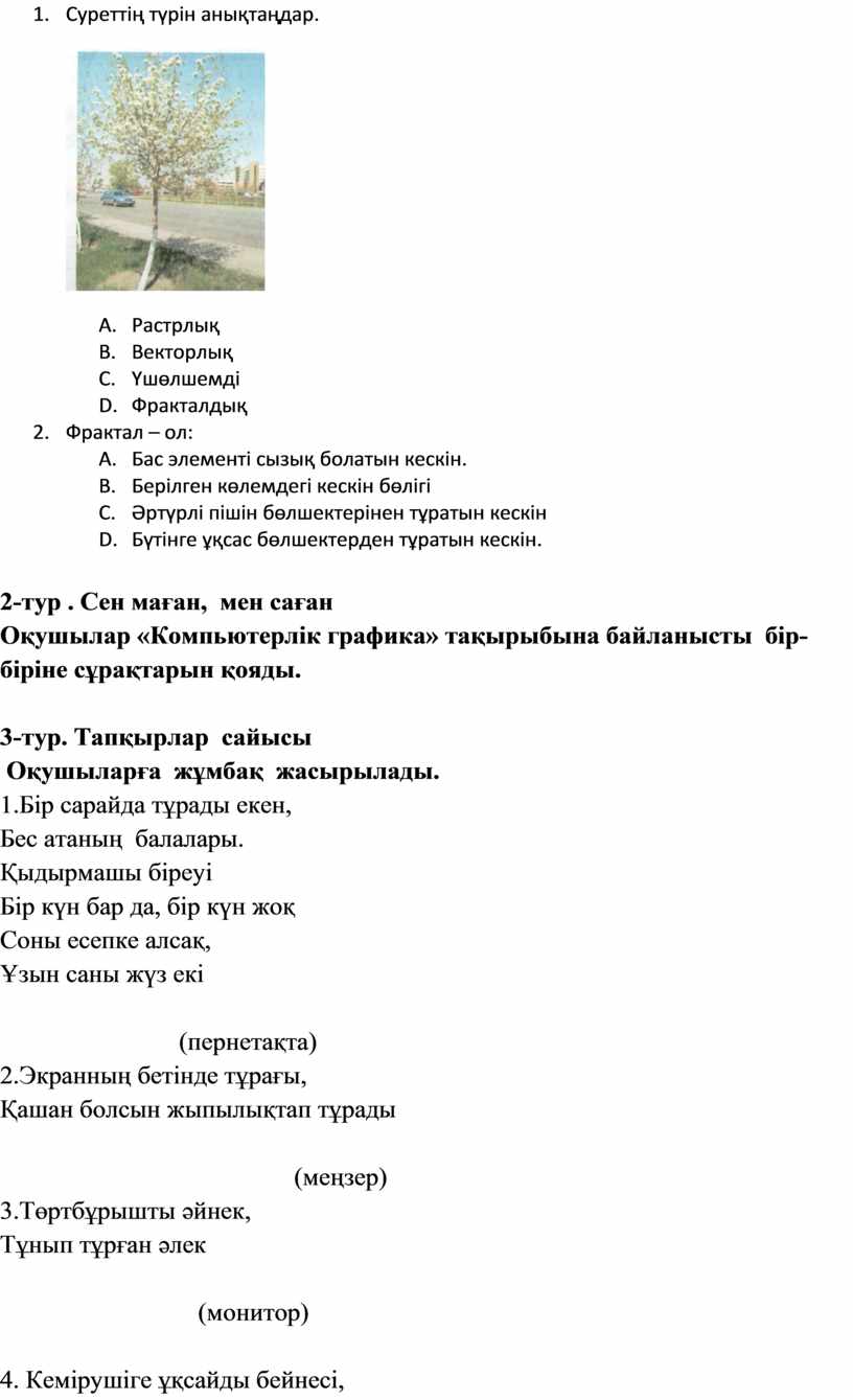 Оқушылар «Компьютерлік графика» тақырыбына байланысты бір-біріне сұрақтарын қояды.