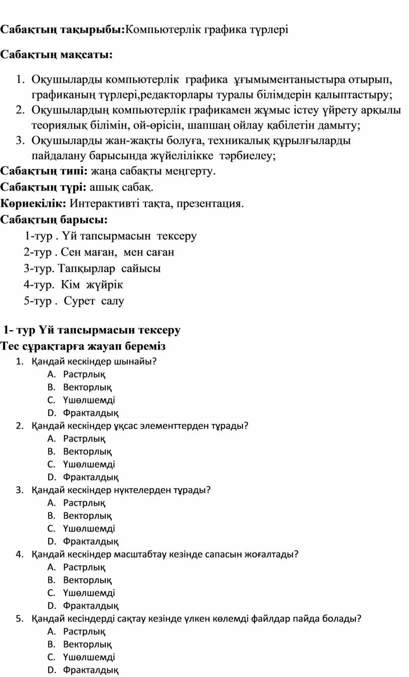 Сабақтың тақырыбы:Компьютерлік графика түрлері