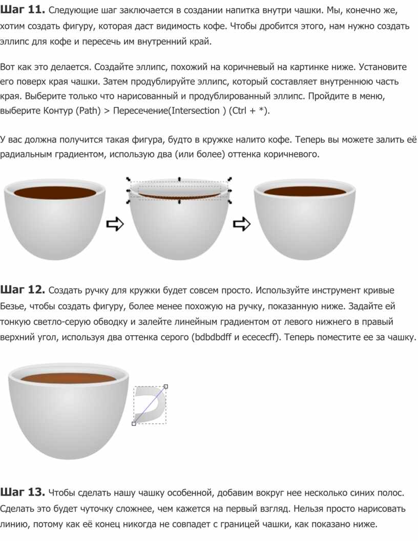 Шаг 11. Следующие шаг заключается в создании напитка внутри чашки. Мы, конечно же, хотим создать фигуру, которая даст видимость кофе. Чтобы дробится этого, нам нужно создать эллипс для кофе и пересечь им внутренний край.