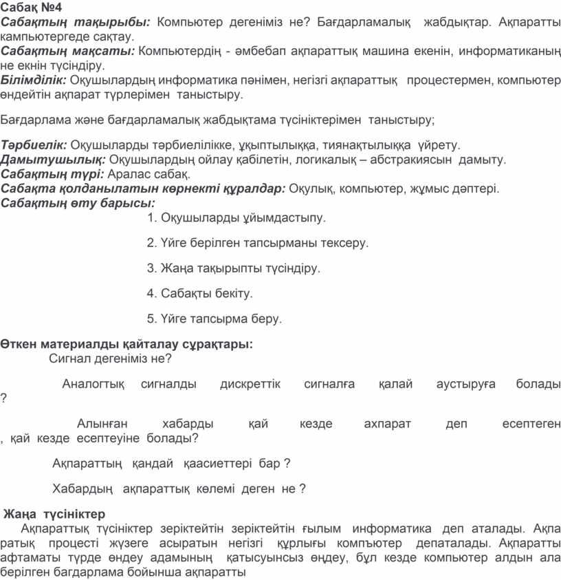 Сабақтың тақырыбы: Компьютер дегеніміз не? Бағдарламалық жабдықтар. Ақпаратты кампьютергеде сақтау.