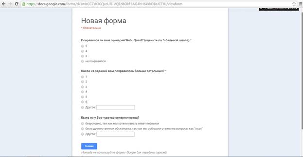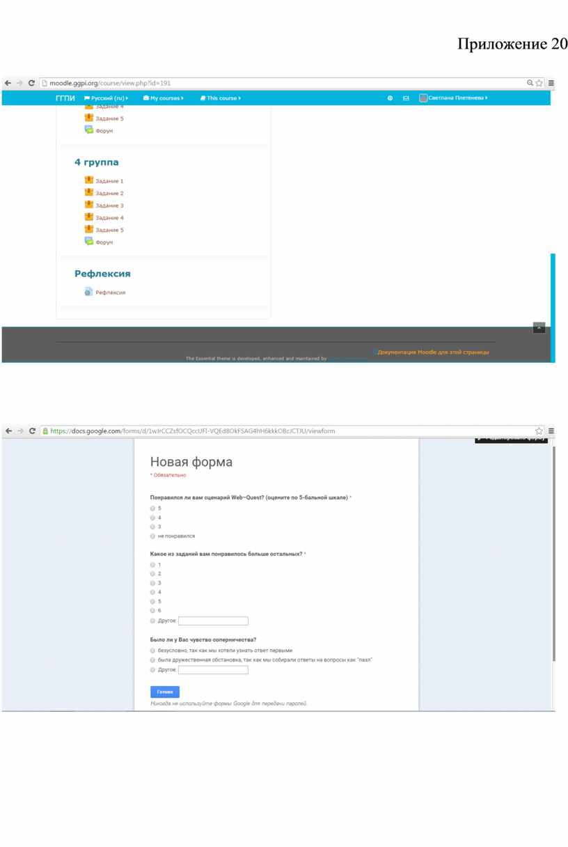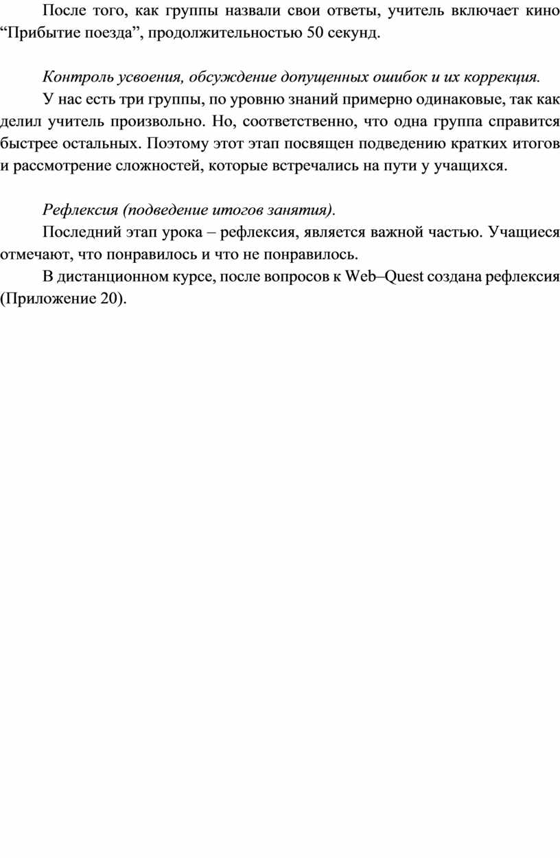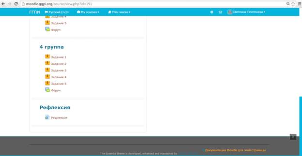 В дистанционном курсе, после вопросов к Web–Quest создана рефлексия (Приложение 20).