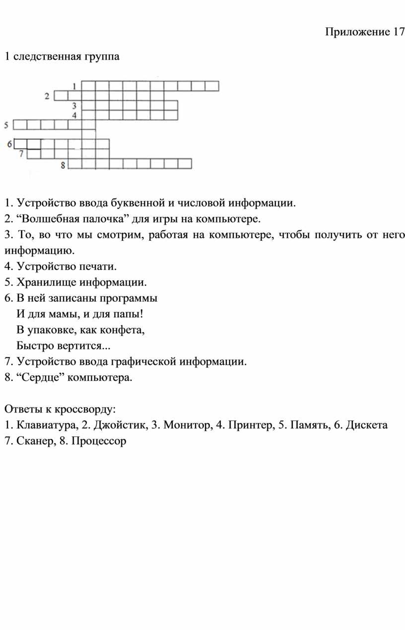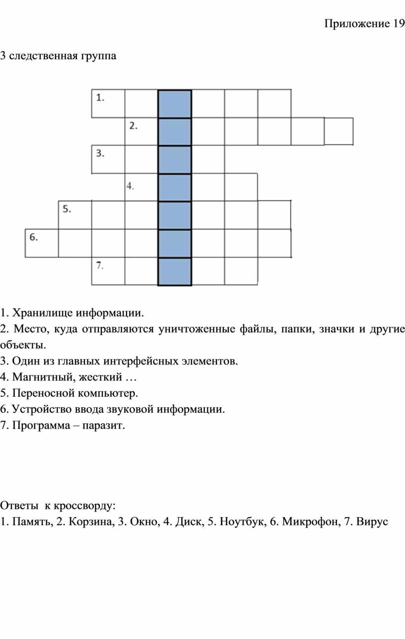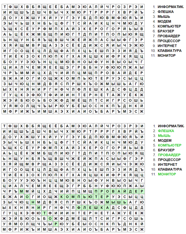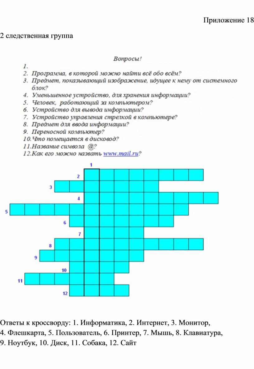 Ответы к кроссворду: 1. Информатика, 2. Интернет, 3. Монитор,
