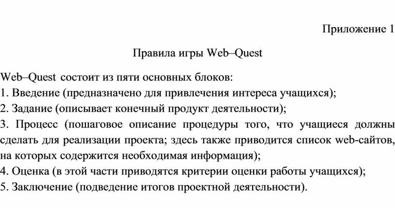 Web–Quest состоит из пяти основных блоков: