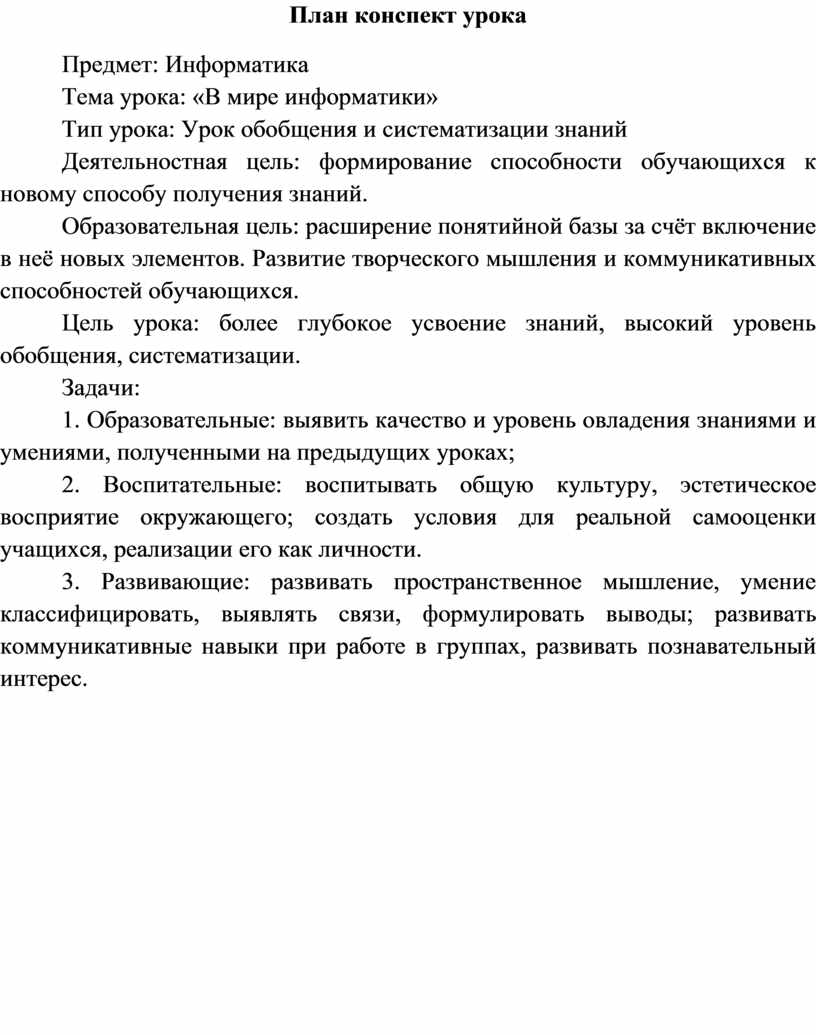План конспект урока