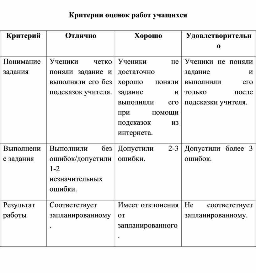 Критерии оценок работ учащихся