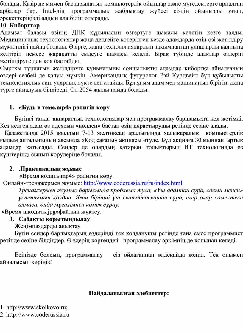 Онлайн-тренажермен жұмыс: http://www.coderussia.ru/ru/index.html
