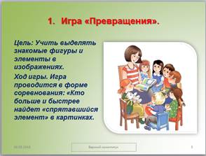 Ход игры. Игра проводится в форме соревнования: «Кто больше и быстрее найдет «спрятавшийся элемент» в картинках..