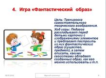 Ход игры. Педагог раскладывает перед детьми карточки с изображениями элементов и предлагает построить из них фантастический образ (существо, предмет), а затем описать, какими свойствами обладает созданный образ, как его можно использовать и т.п.