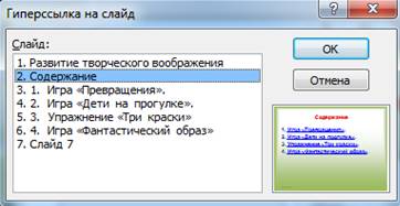 3. Выделите текст Игра «Фантастический образ». Сделайте этот текст гиперссылкой на слайд под номером шесть.