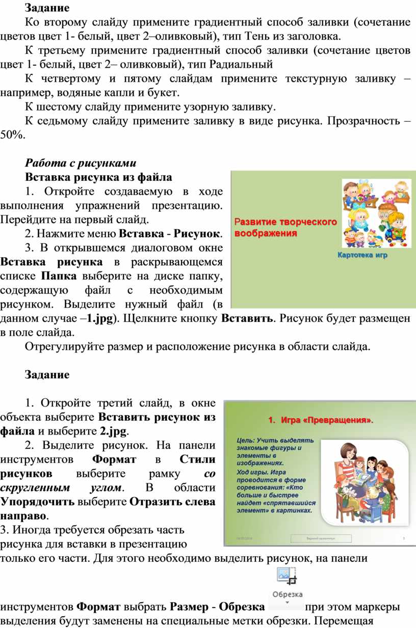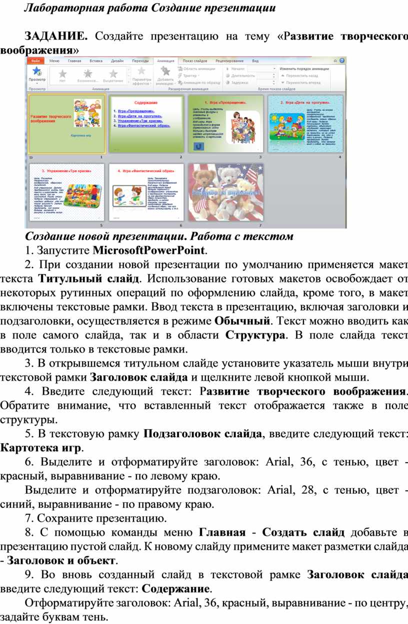 ЗАДАНИЕ. Создайте презентацию на тему «Развитие творческого воображения»