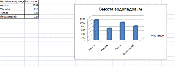Данные в столбцах или строках листа можно представить в виде гистограммы. В гистограмме категории обычно отображаются по горизонтальной оси, а значения — по вертикальной оси, как показано на этой диаграмме: