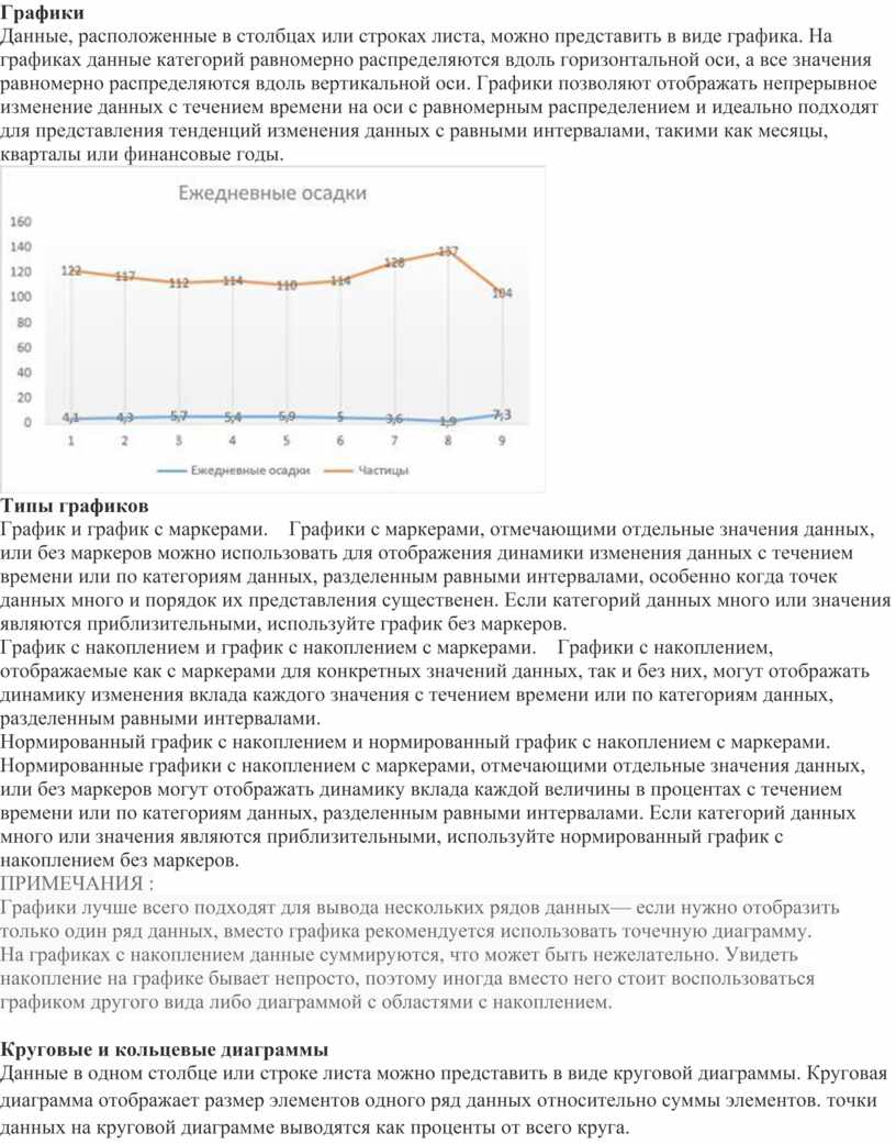Графики лучше всего подходят для вывода нескольких рядов данных— если нужно отобразить только один ряд данных, вместо графика рекомендуется использовать точечную диаграмму.