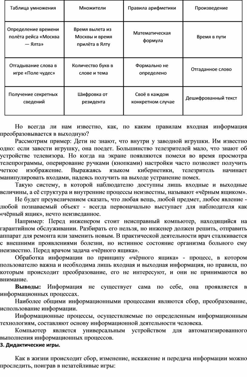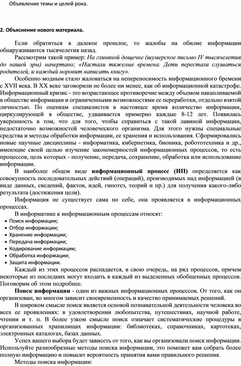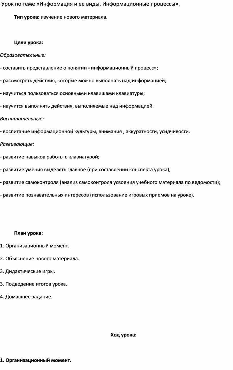 Урок по теме «Информация и ее виды. Информационные процессы».