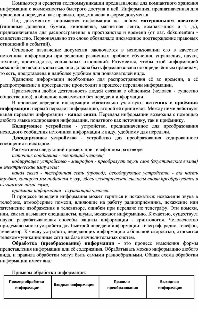 Компьютер и средства телекоммуникации предназначены для компактного хранения информации с возможностью быстрого доступа к ней. Информация, предназначенная для хранения и передачи, как правило, представлена в форме документа.