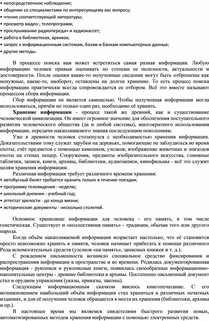 Когда объём накапливаемой информации возрастает настолько, что её становится просто невозможно хранить в памяти, человек начинает прибегать к помощи различного Рода вспомогательных средств (узелков «на память», записных книжек и т. д.).
