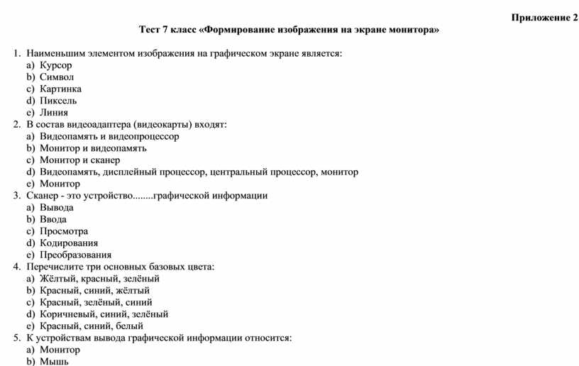 Ребята отвечают на тест по предыдущей теме «Формирование изображения на экране монитора». Заносят оценку в бланк.