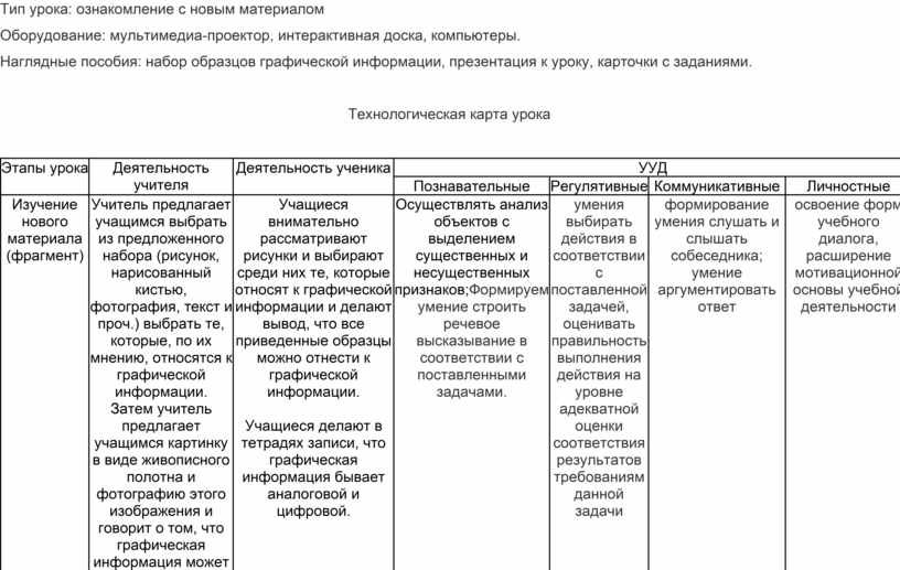 Наглядные пособия: набор образцов графической информации, презентация к уроку, карточки с заданиями.