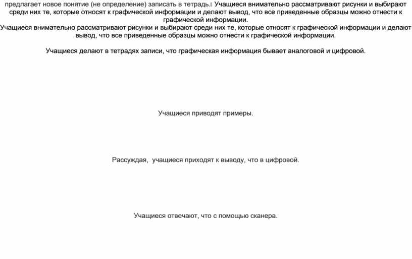 Учащиеся делают в тетрадях записи, что графическая информация бывает аналоговой и цифровой.