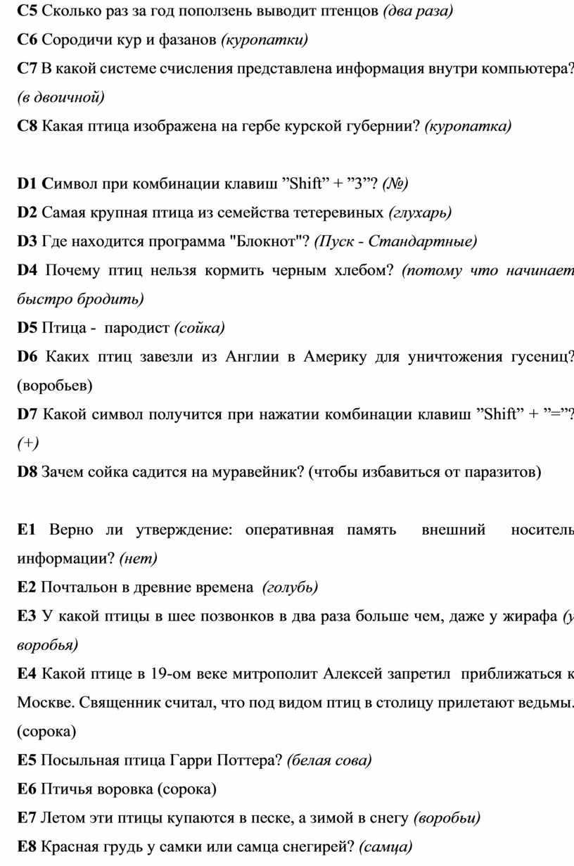 Вопросы для команд, как по биологии, так и по информатике.