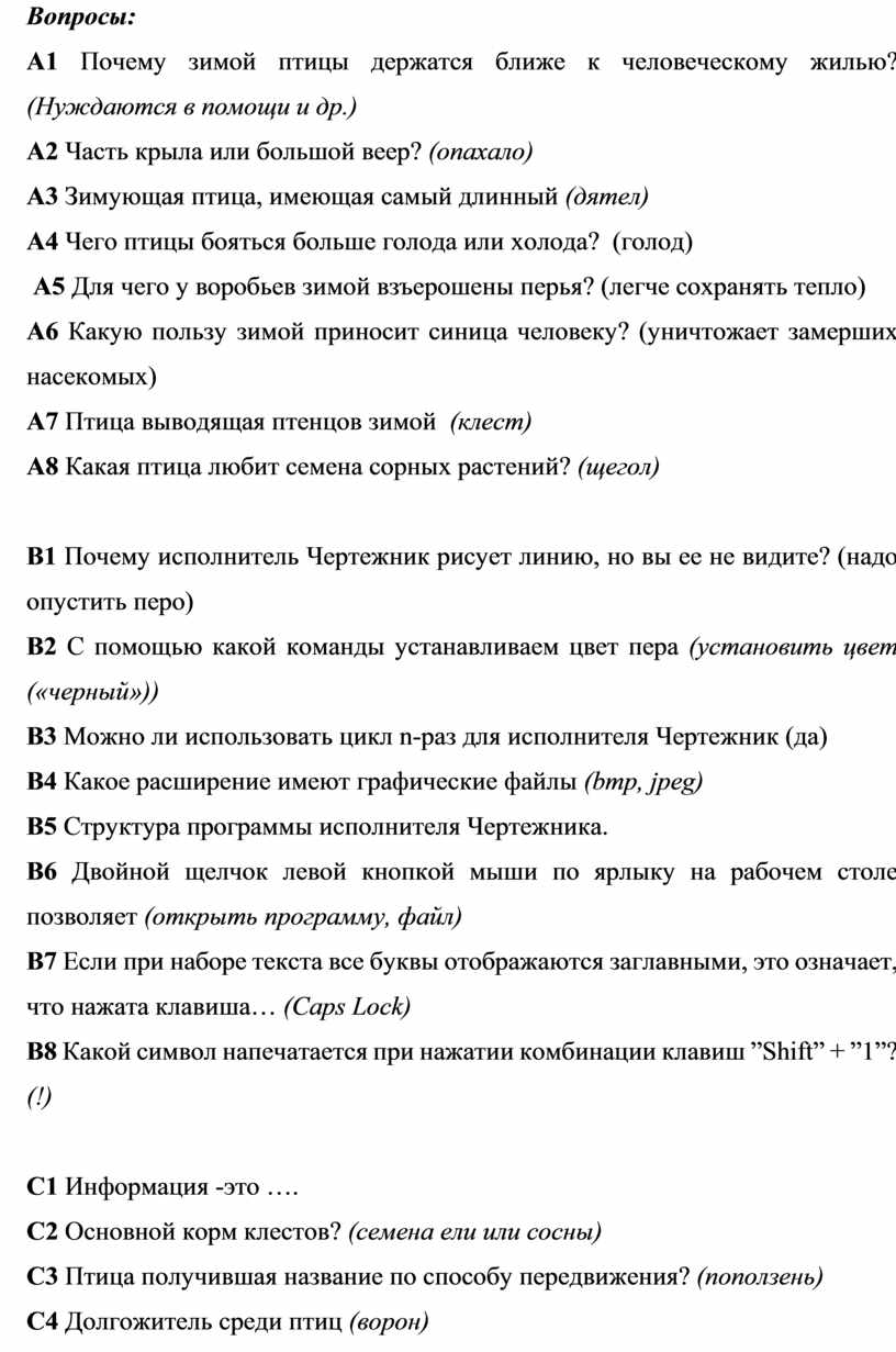 Вопросы: