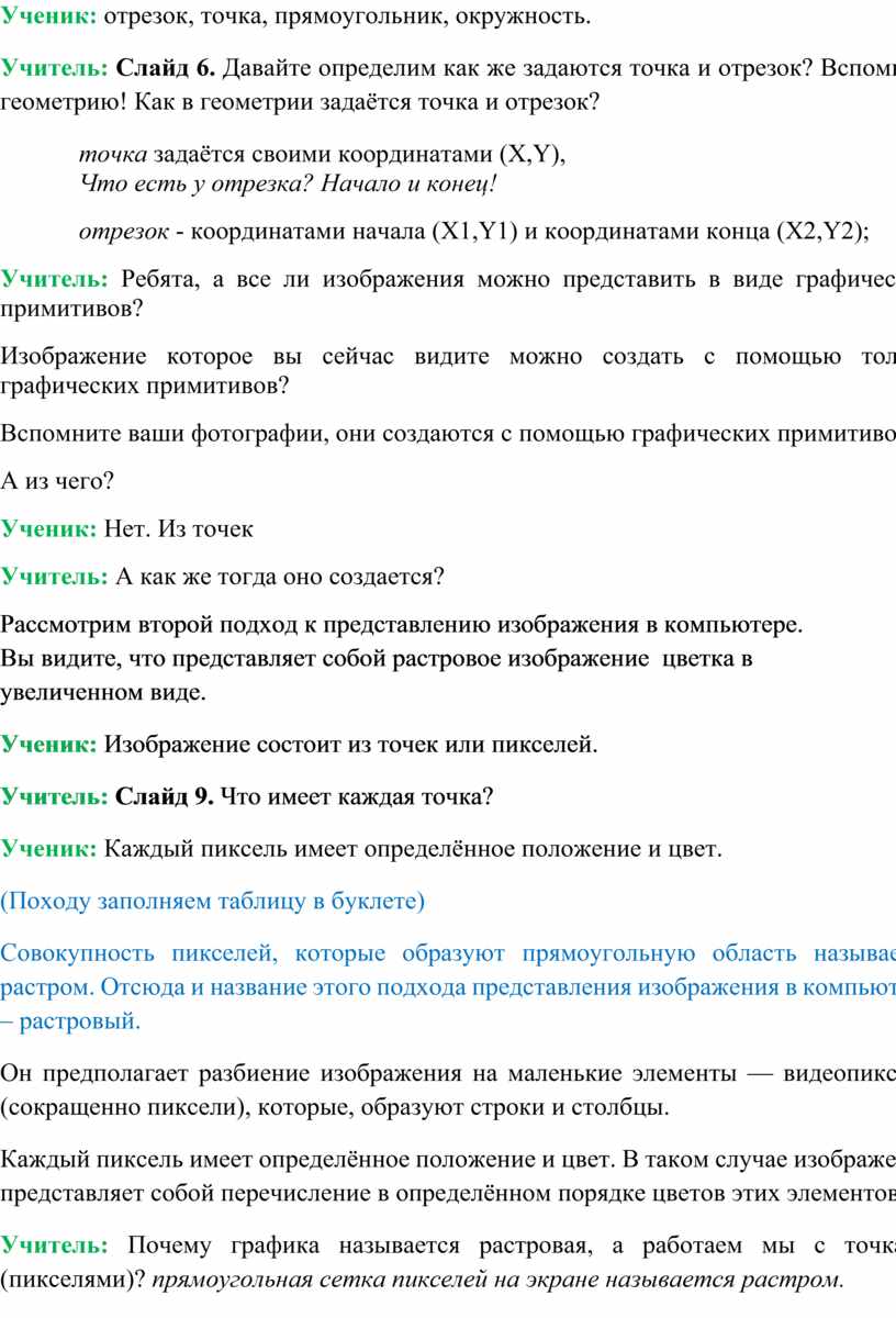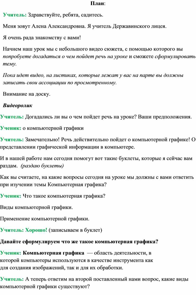 Учитель: А теперь ответим на второй поставленный нами вопрос, какие виды компьютерной графики существуют?