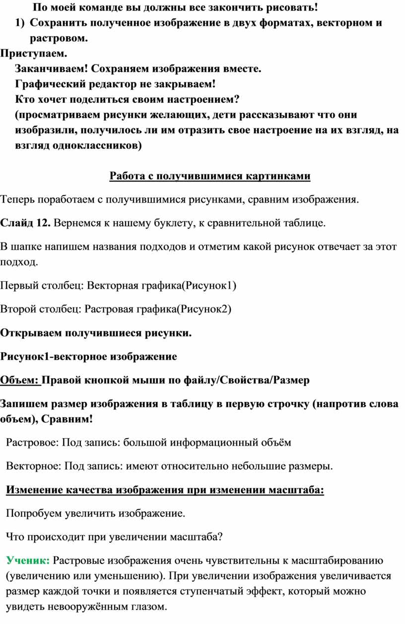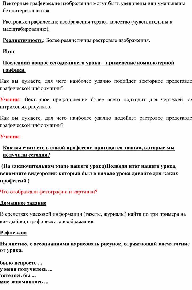 Ученик: Векторное представление более всего подходит для чертежей, схем, штриховых рисунков.