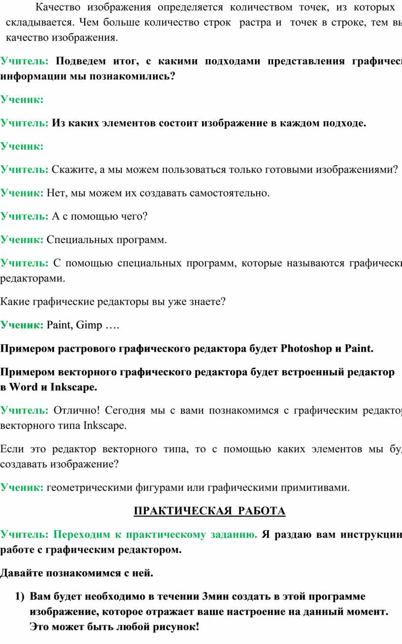 Учитель: Переходим к практическому заданию. Я раздаю вам инструкции по работе с графическим редактором.