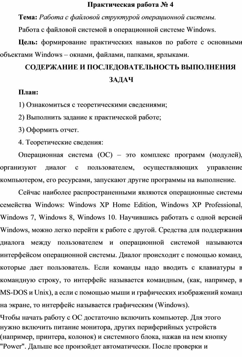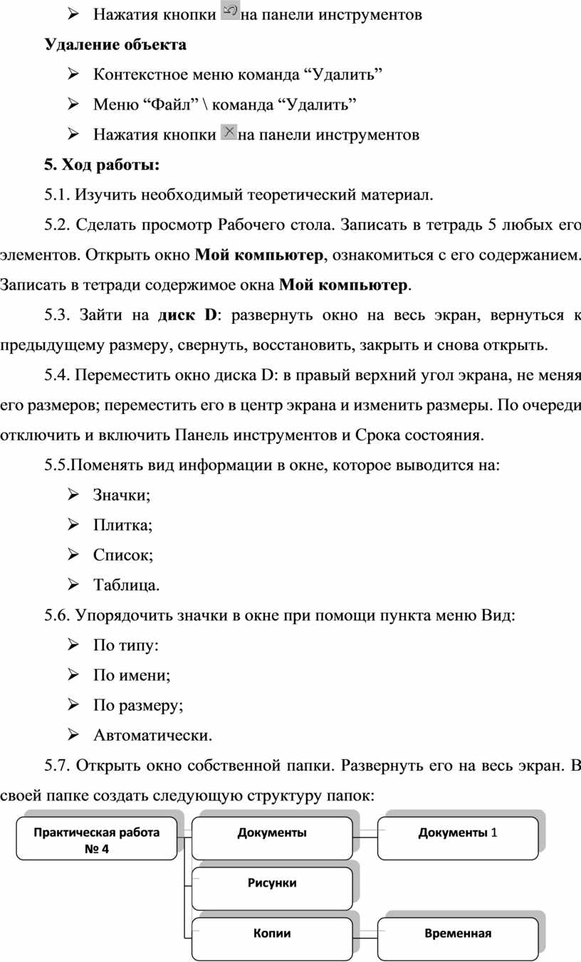 Цель: формирование практических навыков по работе с основными объектами Windows – окнами, файлами, папками, ярлыками.