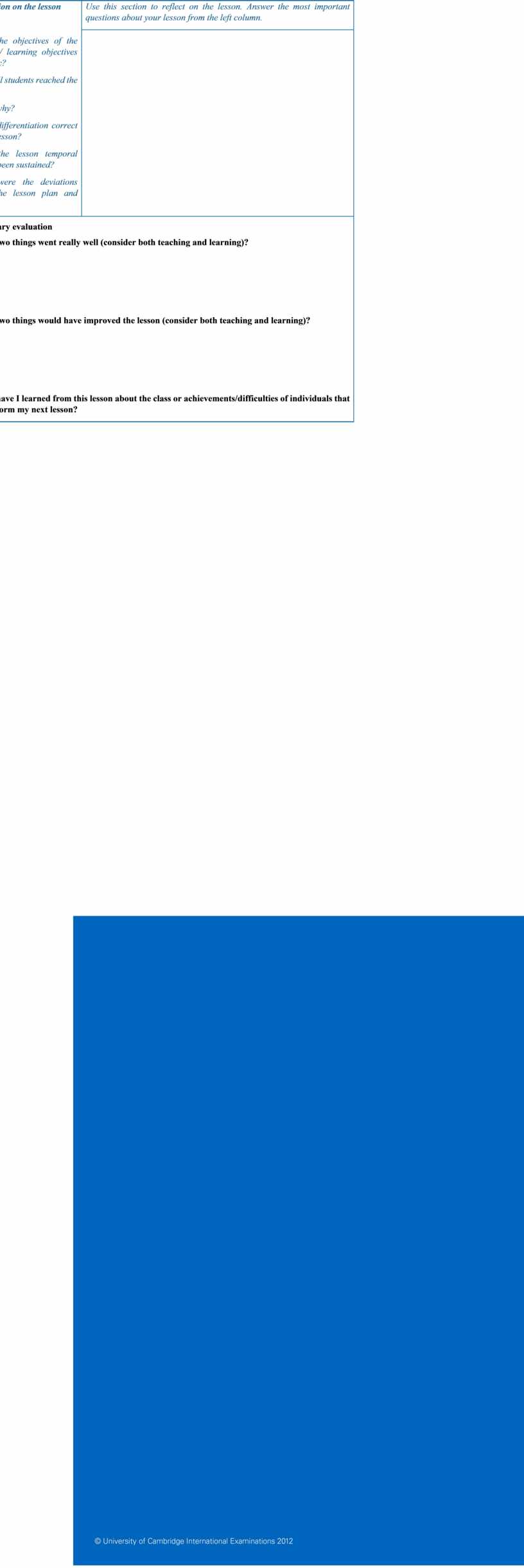 Use this section to reflect on the lesson. Answer the most important questions about your lesson from the left column. |