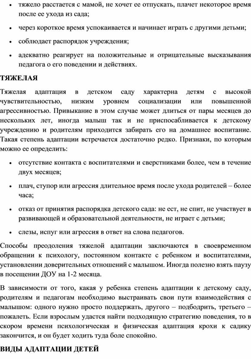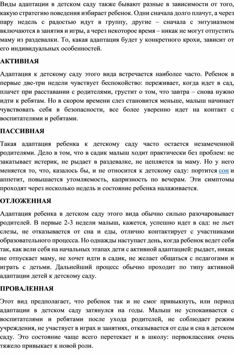 ВИДЫ АДАПТАЦИИ ДЕТЕЙ