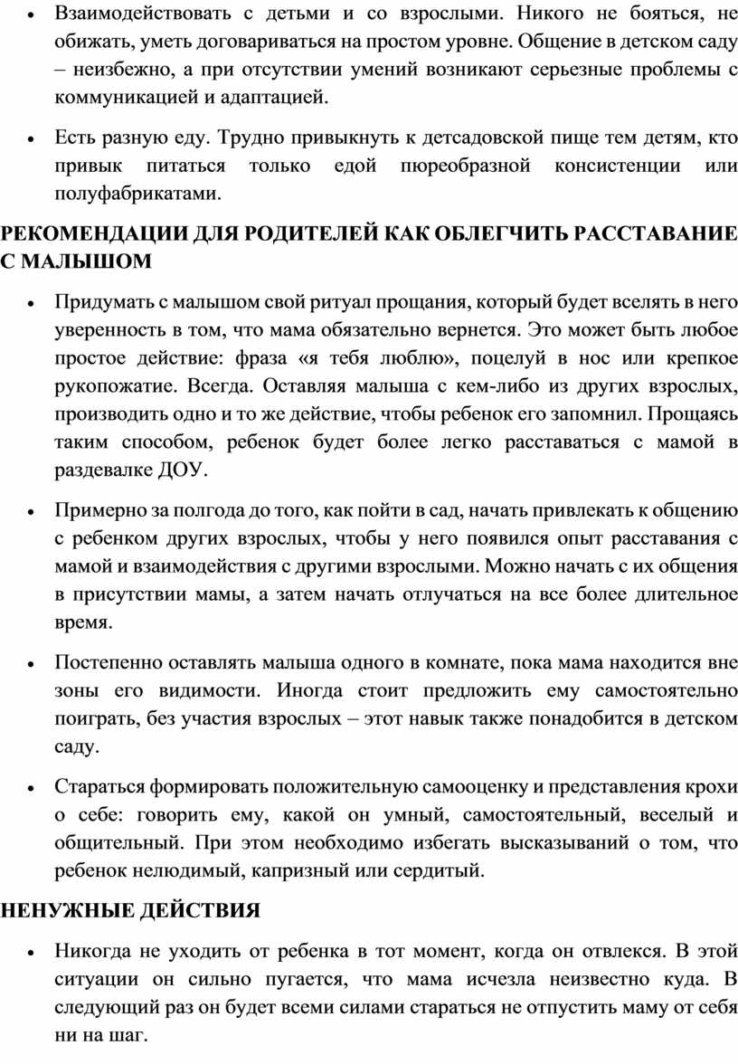 РЕКОМЕНДАЦИИ ДЛЯ РОДИТЕЛЕЙ КАК ОБЛЕГЧИТЬ РАССТАВАНИЕ С МАЛЫШОМ
