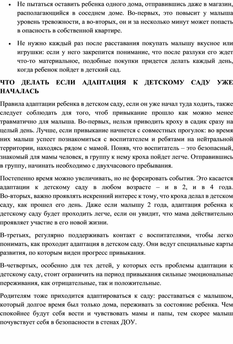 ЧТО ДЕЛАТЬ ЕСЛИ АДАПТАЦИЯ К ДЕТСКОМУ САДУ УЖЕ НАЧАЛАСЬ