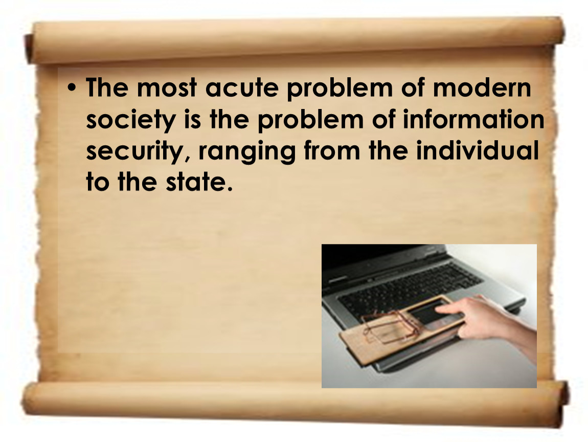 The most acute problem of modern society is the problem of information security, ranging from the individual to the state.